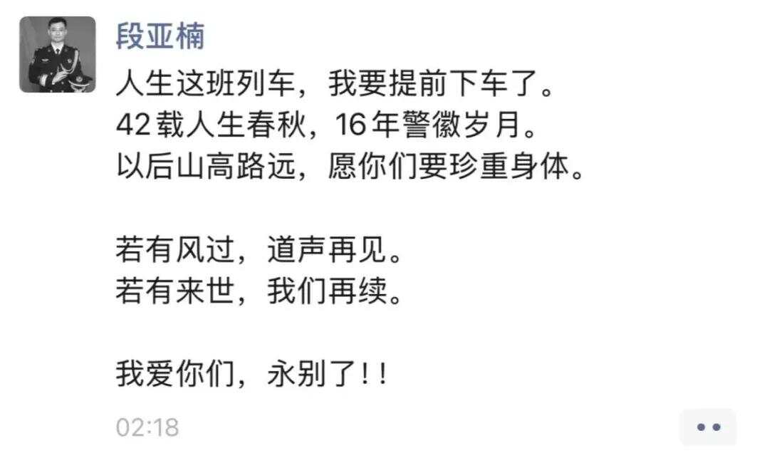 9月27日上午,安海省Bozhou公共安全局的警察Duan Yanan突然在他的朋友圈子中发布了一条短信:Duan Yanan的家人也发布了微博的itu告:每个人在评论领域都很难过。互联网上著名的警察和江宁地区警察南京说:“一个人的生命仅与生死有关。杜安·亚南(Duan Yanan)是一个著名的互联网,在中国警察圈子中很受欢迎,并且已经参加了很多次慈善活动。在她的微博中,她介绍了一些胰腺癌的情况:在发现胰腺癌之前,我患有胃肠镜,喜欢睡觉,醒来后我就完成了。只是饮用水太不舒服了,我想呕吐。我被诊断出患有胃肠道畸形溃疡(康复期),所以我镇上的医生要求我连续三个月服用胃药这也可能导致发现我的胰腺癌的延迟。 Duan Yanan一生中负责Bozhou公共安全的宣传工作,并授予Bozhou Good网民的头衔。 9月20日,她向她的朋友圈发布了一条消息:张Zhenyue说了母亲在重病时告诉她的话,她总是会记住生活不再是 - “尝试攀登,并乐于跌倒。”来源| Anhui交通收音机,@Duan Yanan Weibo